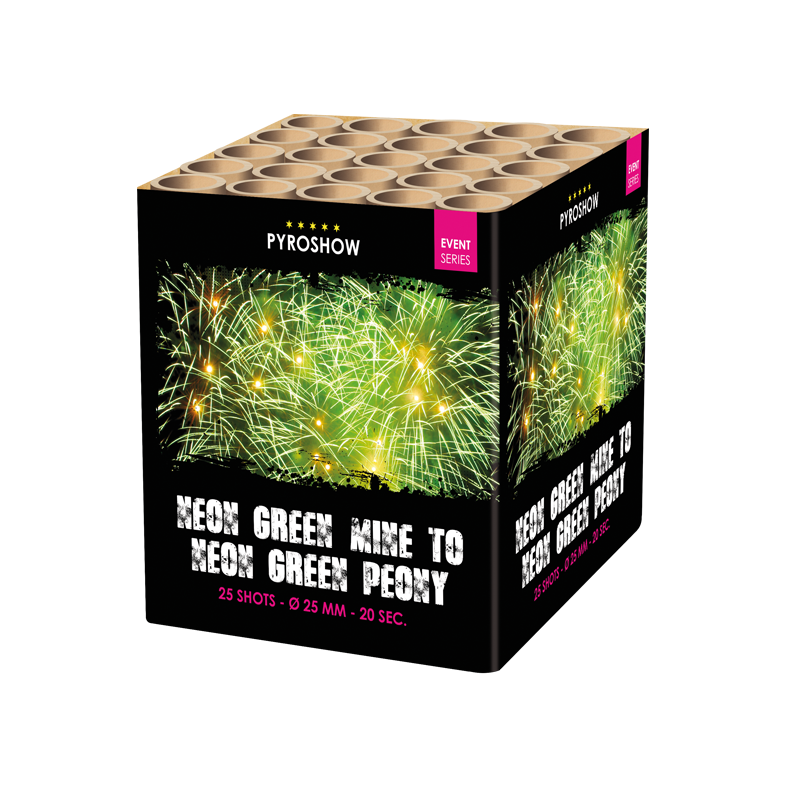 Neon Green Peony w.Green Tail & Mine Goedkoop vuurwerk kopen bij Vuurwerkwinkel Alphen aan Den Rijn