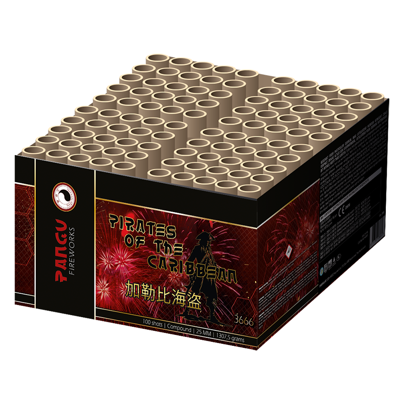 Pirates of the Caribbean 100 shots 25mm Goedkoop vuurwerk kopen bij Vuurwerkwinkel Alphen aan Den Rijn