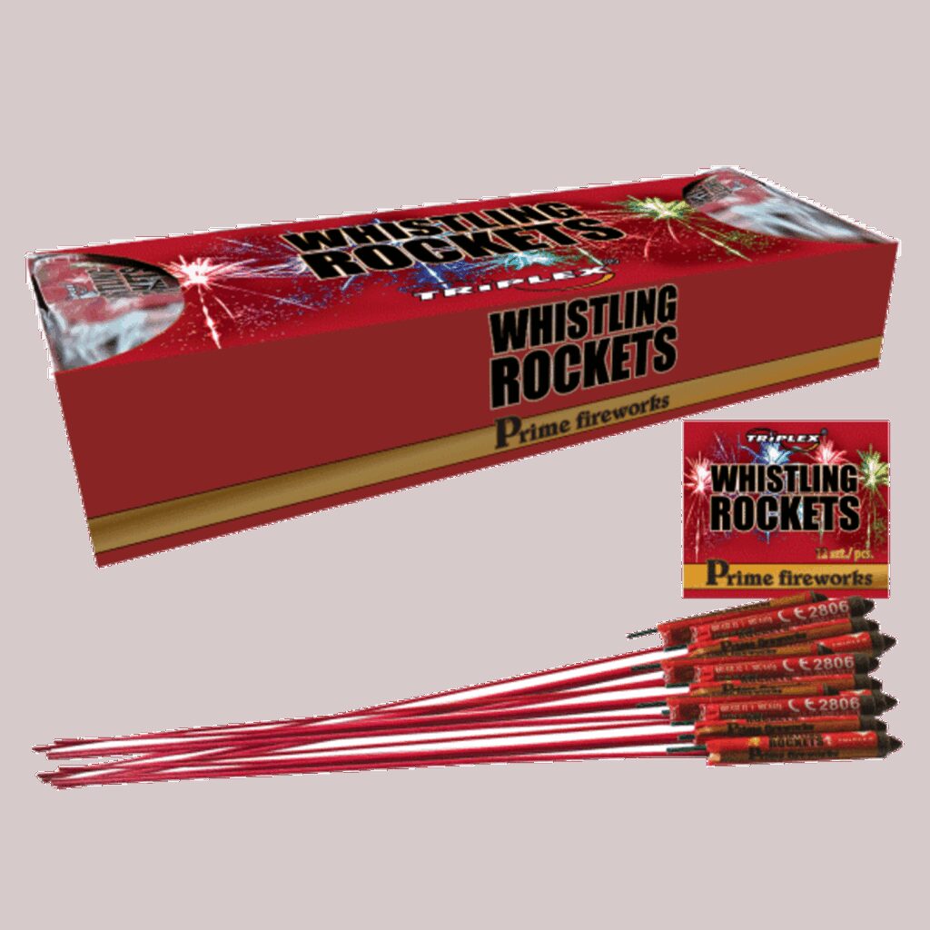 n144 Feuerwerksraketen von Triplex mit Pfeifeffekt und lautem Knall.